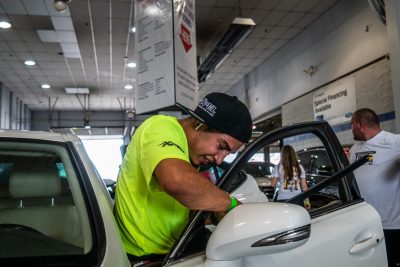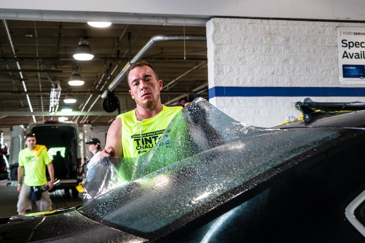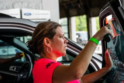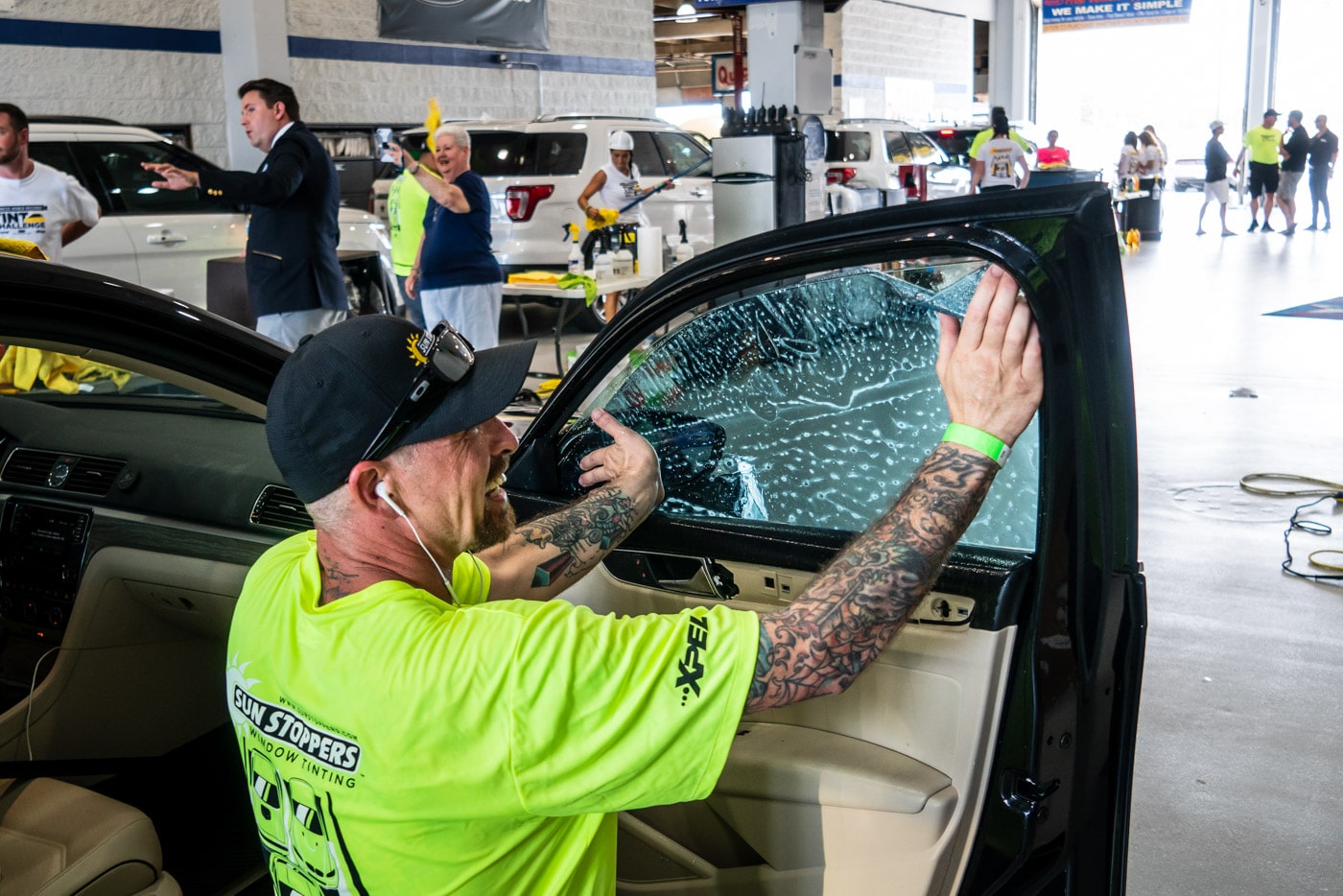 The Sun Stoppers team of tinters tinted 438 windows on 170 vehicles and set a record in less than eight hours.